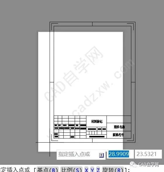 i插入块快捷键插入做好的竖版A4图框,插入点0,0;