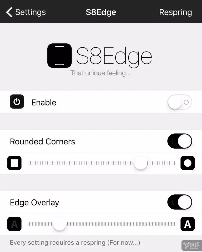 近日越狱社区上架了一款名为“S8Edge”的插件,通过这款插件,您可以在平面的 iPhone 上模拟 Infinity Display 的观感。插件会将屏幕上的角落变圆,并在屏幕的两边添加渐变效果,从而帮助您在 iPhone 上重现三星 S8 Infinity Display 的外观和感觉。