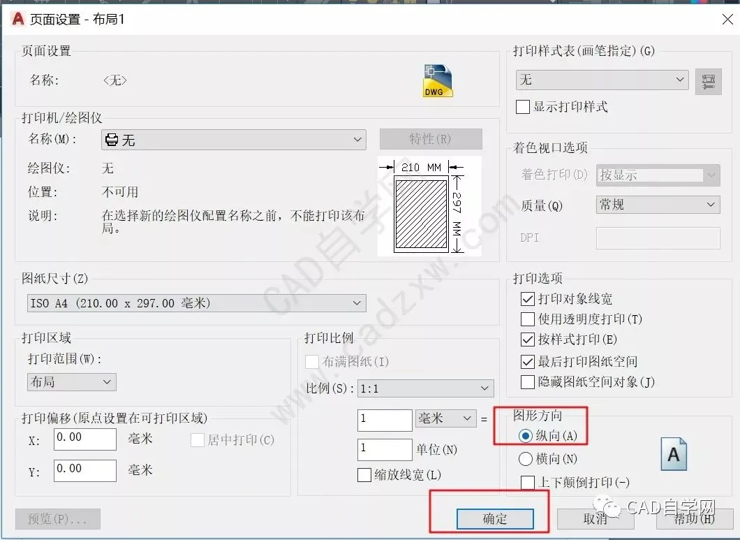 改成纵向,点击确定;