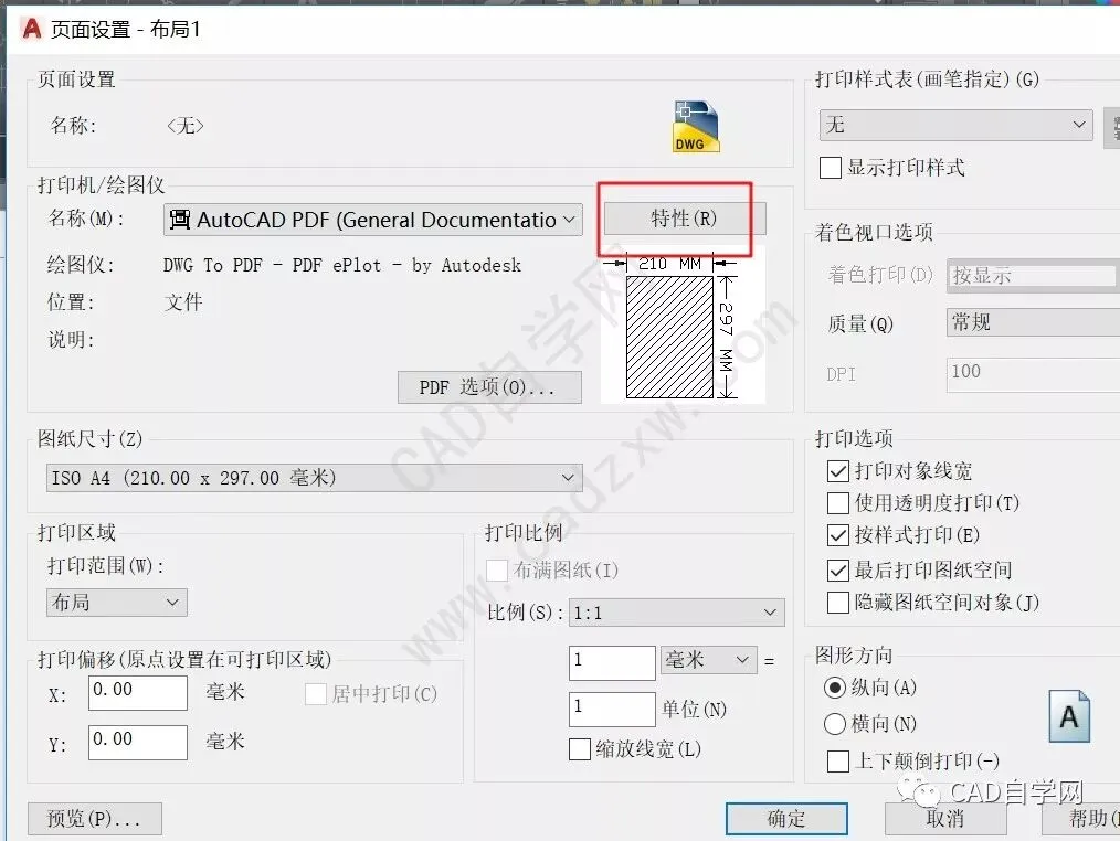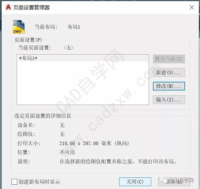 同样在页面设置管理器中选择布局1,点修改,点特性;