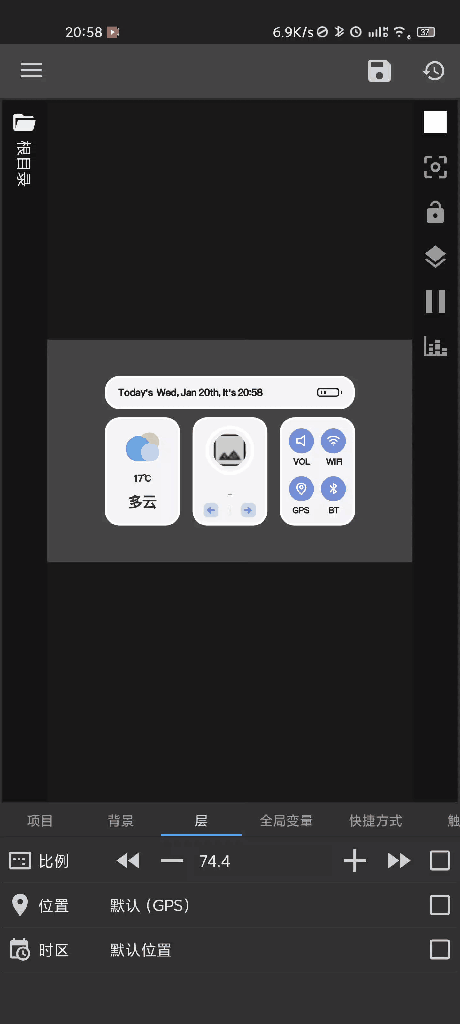 这里差友们可能已经发现这个小部件好像有点小,不要慌,在 KWGT 编辑页面,我们可以直接把整个小部件调整到适合手机屏幕大小。
