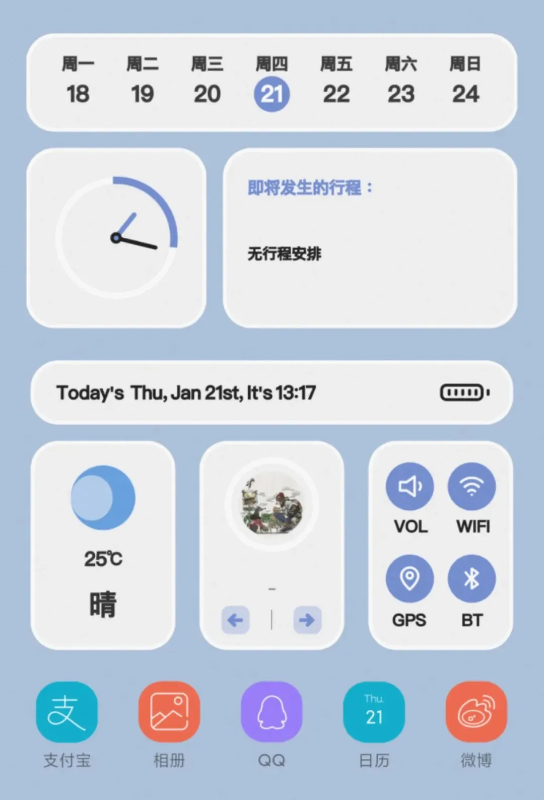 这些原生小组件放某些主题还勉强可以看,要是遇到那些风格特别突出的主题就会显得非常突兀,有好几次世超甚至觉得桌面像是贴了一张狗皮膏药。