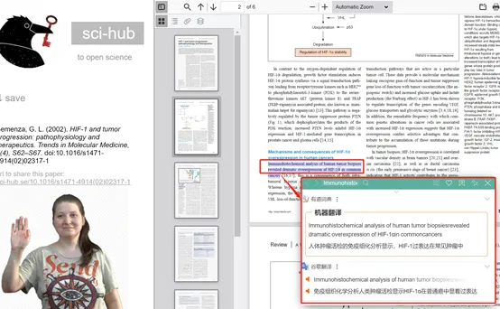 如下图中,在Sci-hub尚未下载下来的PDF,即可划词翻译。