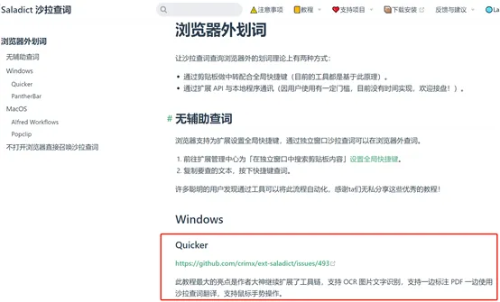 如基于支持 OCR 图片文字识别的工具,可实现一边标注 PDF,同时,一边使用沙拉查词翻译的功能,可谓强强联合。感兴趣的同学可详见网址:https://saladict.crimx.com/native.html
