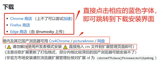 2)上不了web store或其他浏览器,可浏览其在Github的主页(网址:https://github.com/crimx/ext-saladict/releases),找到以下截图的内容,即可下载相应的扩展程序文件和熟悉安装流程。