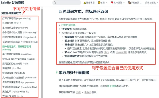 对于一般用户,使用其默认的设置,即基本满足使用需求;若对工具还觉得可以优化,不要犹豫,点击设置界面的使用说明,进一步设置,沙拉查词是可以更接近你想要的样子的。