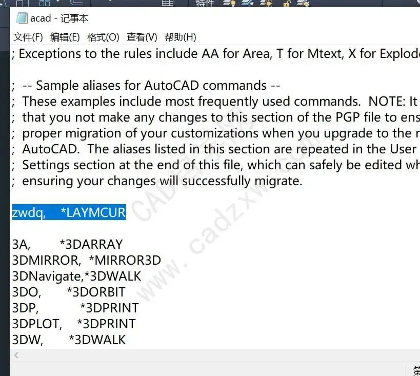 在里面加上 zwdq, *LAYMCUR 保存即可;