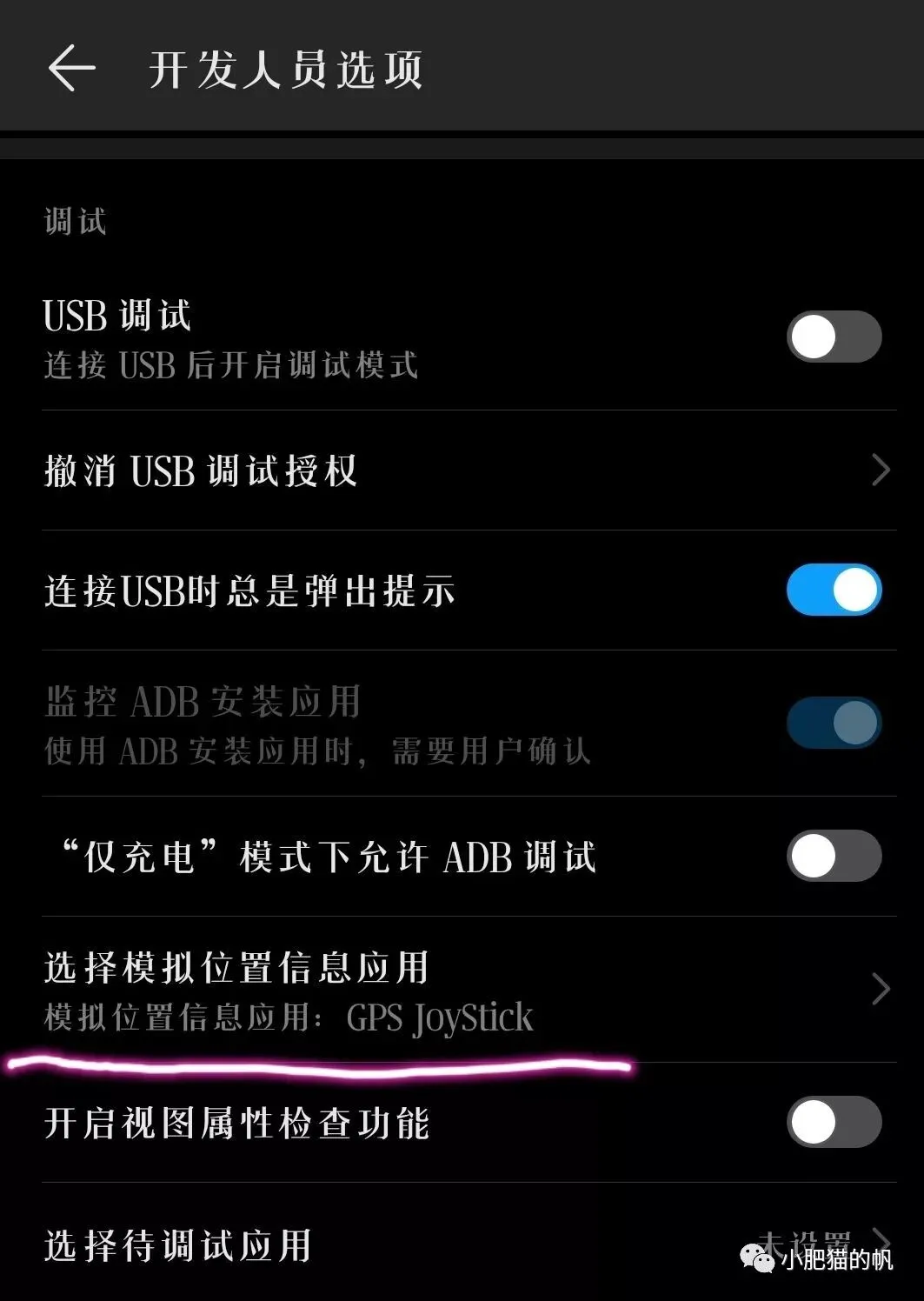务必先在安卓系统的开发者选项当中选择模拟位置信息应用