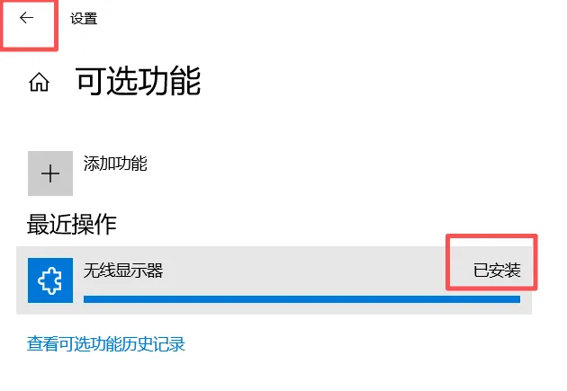 等待无线显示器安装完成,点击左上角的箭头,回到投影设置界面;