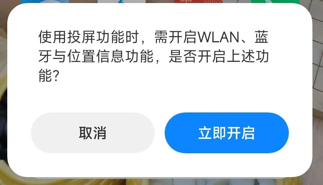 步骤四:进入手机设置环节,咱们点击手机上的“投屏”,再弹出的对话框内点击“立即开启”;