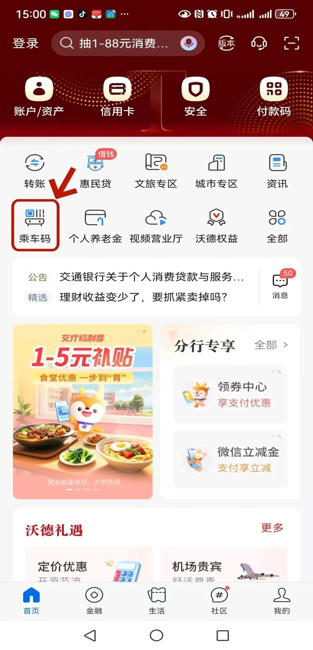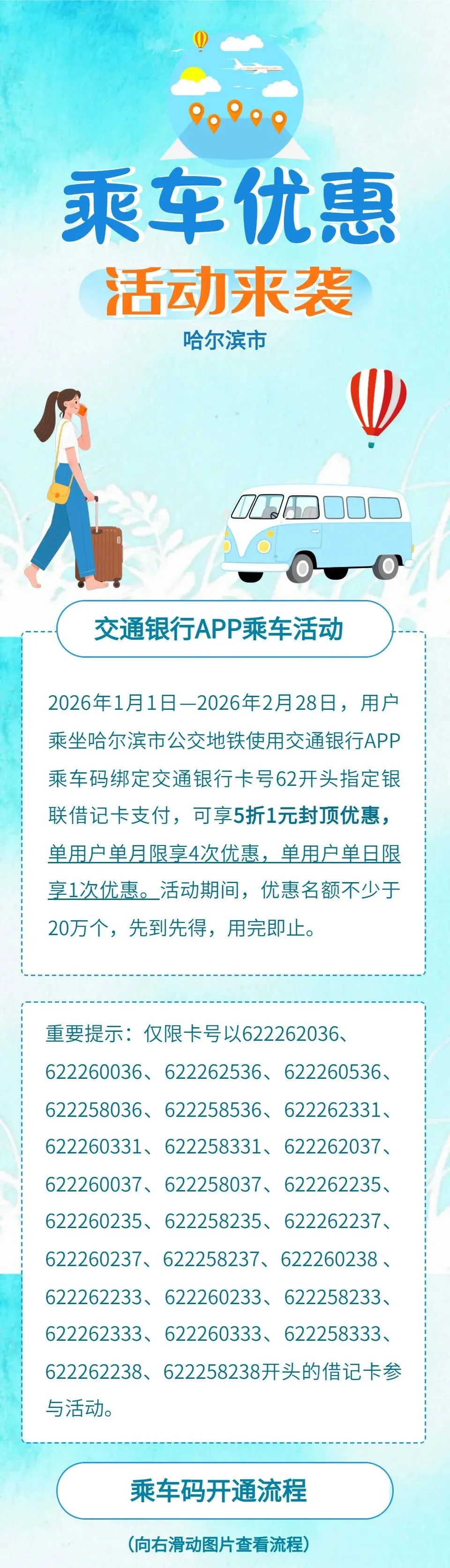 出行福利:交通银行APP乘车享5折1元封顶优惠!
