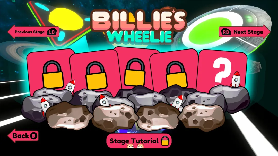 《Billie’s Wheelie》是一款冒险类赛车平台游戏,最多可支持 8 人联机合作/对战模式。玩家将扮演一只被困在球中的仓鼠,努力完成所有挑战,收集所有奶酪碎片以获取奖励,并打破对手的时间纪录。