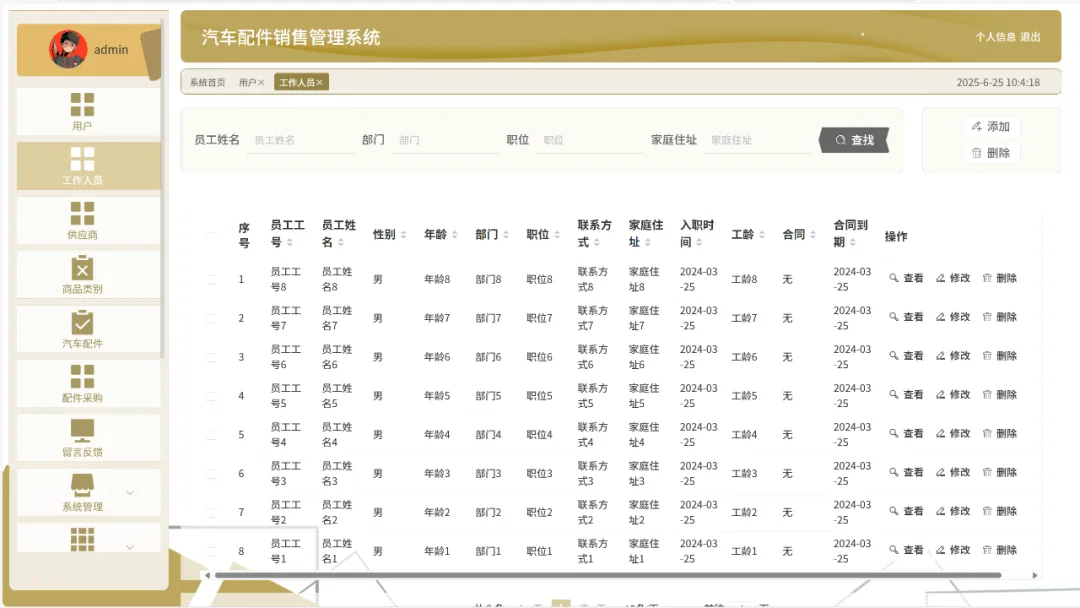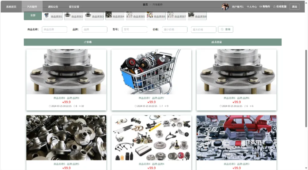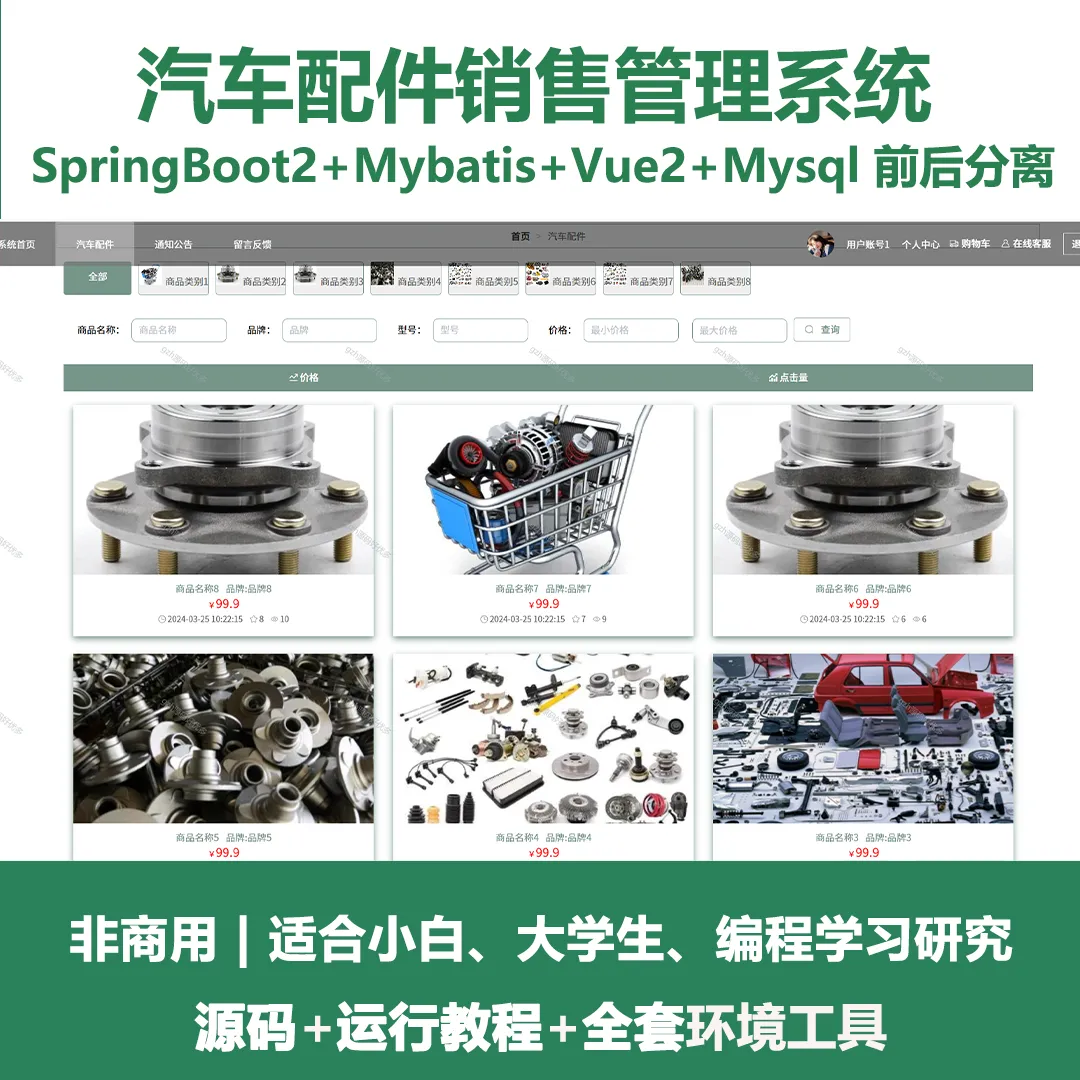 项目定位: 该系统专为汽车配件销售业务设计,旨在通过管理用户、员工、供应商等核心信息,以及展示配件、处理客户反馈等功能,提升汽配销售业务的管理效率与运营水平。