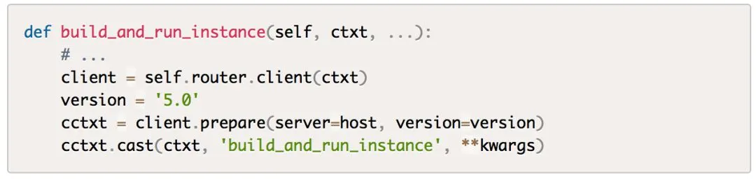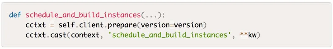其中cast表示异步调用,schedule_and_build_instances是RPC调用的方法,kw是传递的参数。参数是字典类型,没有复杂对象结构,因此不需要特别的序列化操作。