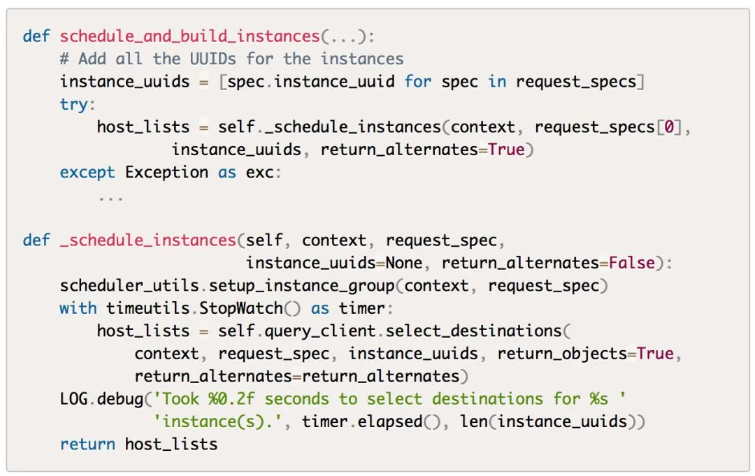 该方法首先调用了_schedule_instances方法,该方法首先调用了scheduler_client的select_destinations方法: