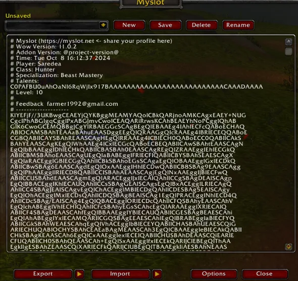 而Myslot插件正是解决这一痛点的神器——它能完整保留你的全部操作设置,让角色转移后无需重新折腾!你只需在插件内直接保存配置,也可以将配置导出为文本文件存放在本地(比如记事本),方便后续随时调用。