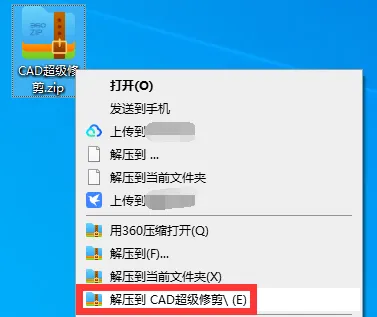 1、得到压缩包之后,鼠标右键解压,点击【解压到CAD超级修剪】。