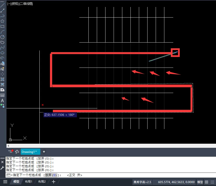 6、点击起点,确定修剪的范围,看线的颜色变化,变暗的线都会被修剪掉。