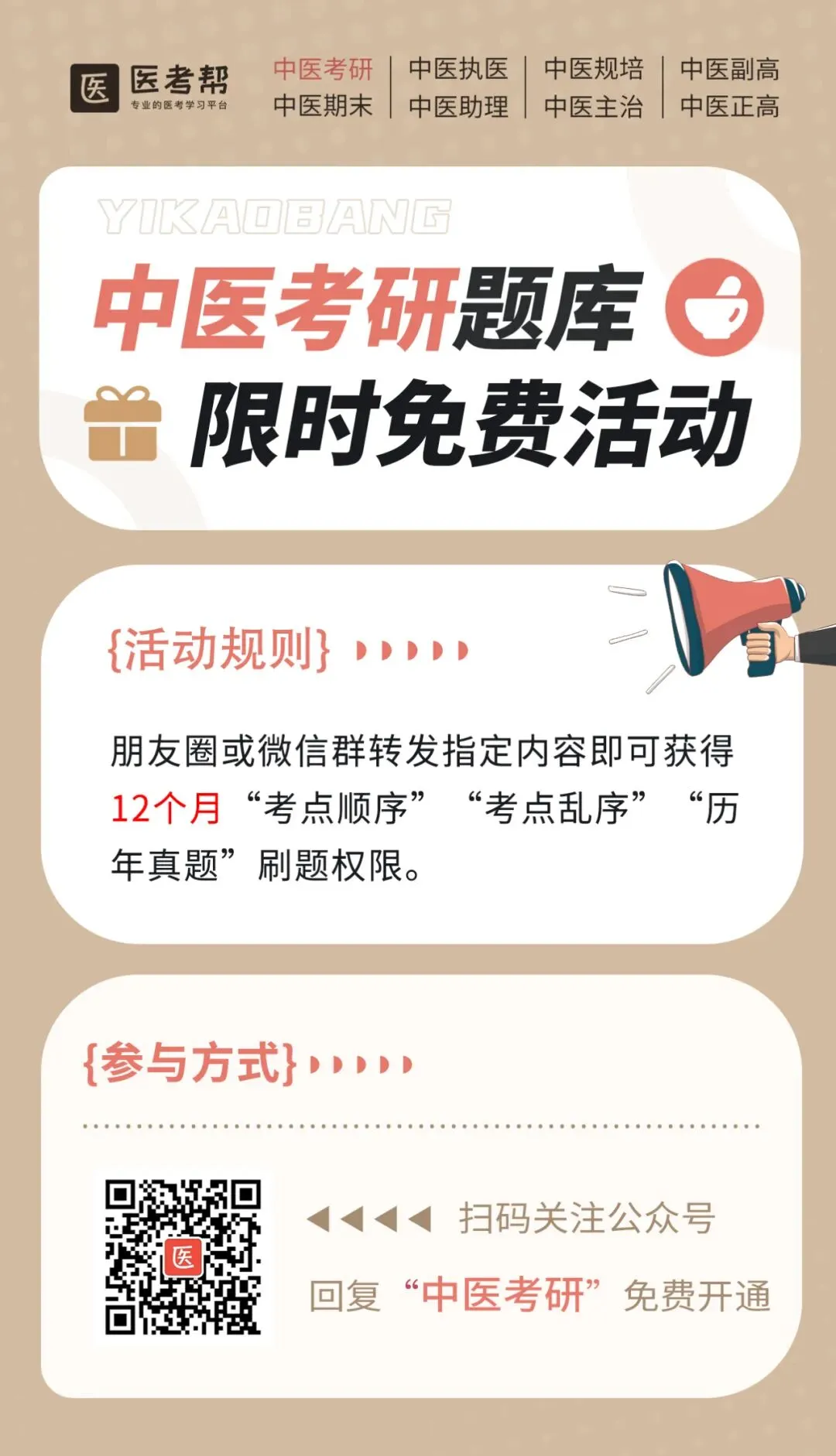 中医考研题库限时免费活动,让你12个月畅刷“考点顺序”、“考点乱序”、“历年真题”三大模式,全面提升备考效率!