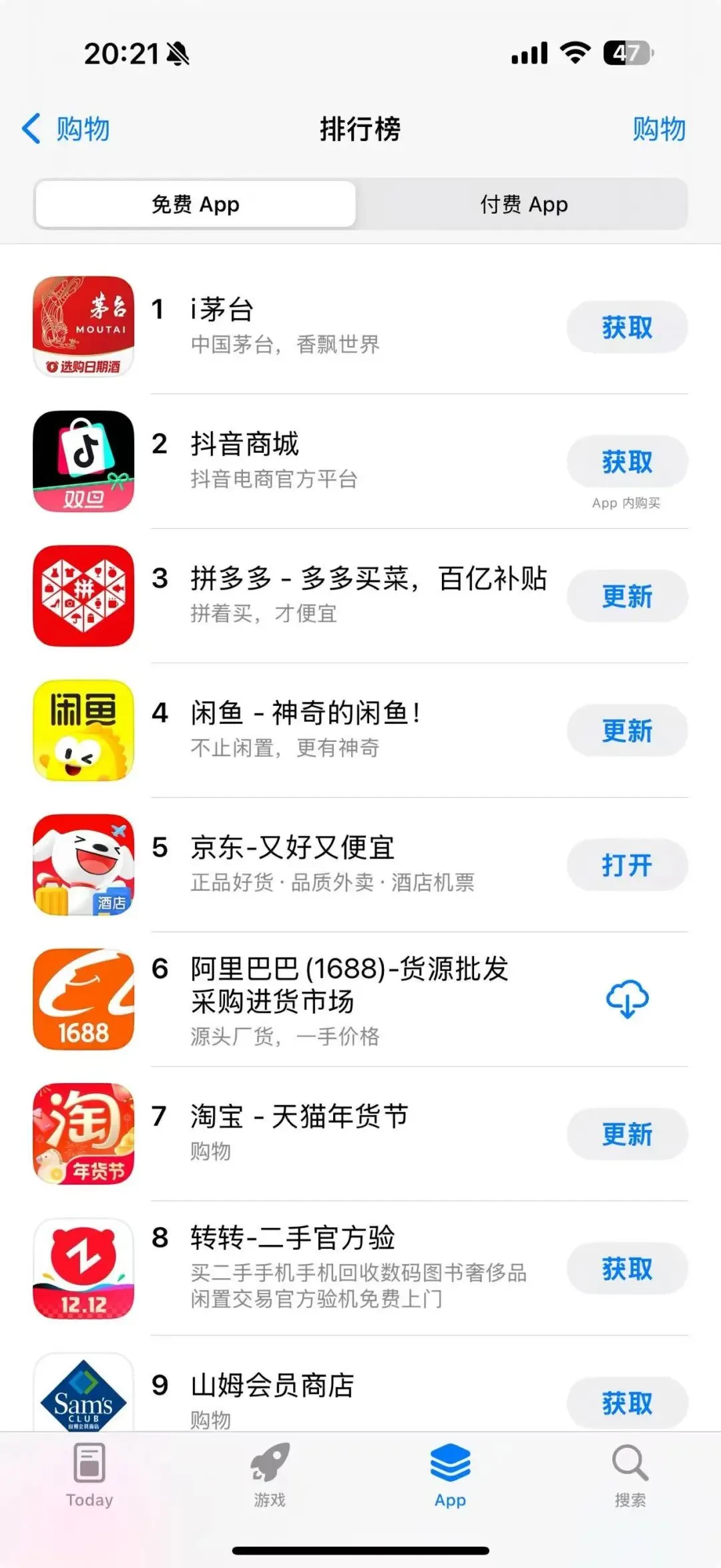 “i茅台”APP冲上苹果应用商店购物免费榜第1;i茅台官方:普茅上线3天时间,超10万名用户买到