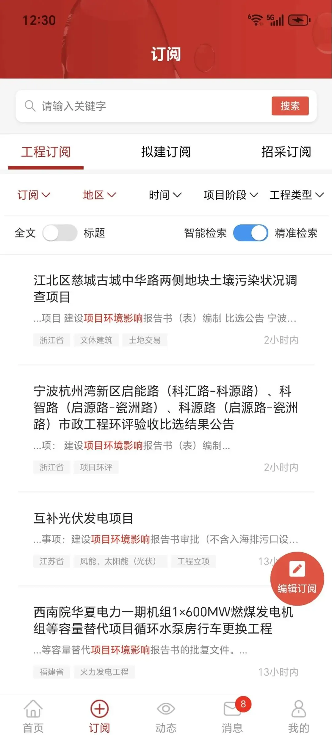 5. 订阅流程简化优化:仅需输入目标关键字与地区,即可快速完成项目信息订阅,精准捕捉意向资源;