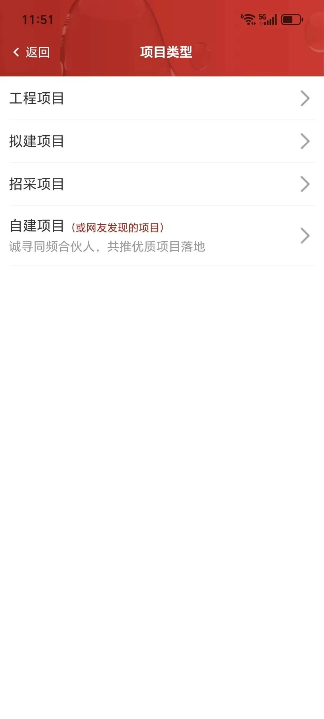 6. 项目类型选择新增自建项目/网友发现项目选项,适配多元合作场景,全面覆盖项目场景,不错过任何合作机会。