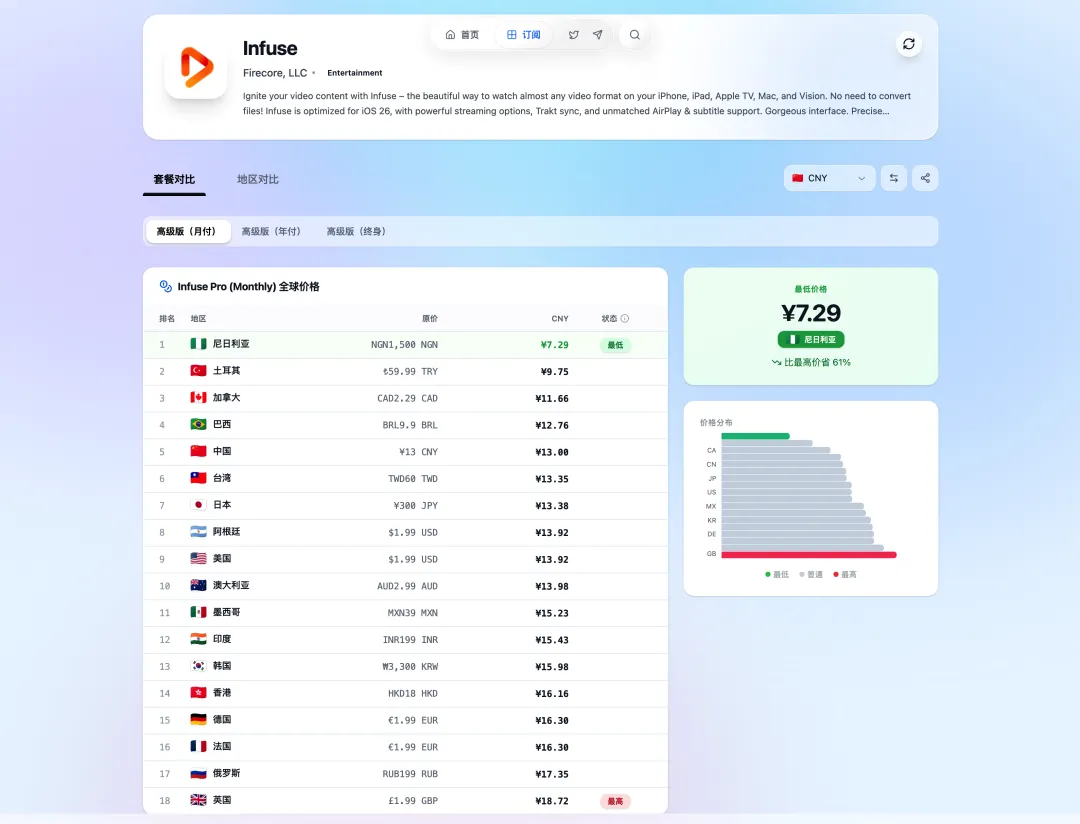 它能实时抓取全球各大区 App Store 的应用价格,不管是美国区、日本区还是土耳其区,所有定价一键对比,再也不用自己手动切换账号查价。网站数据同步更新,精准捕捉价格波动,帮你精准锁定购买最佳时机。