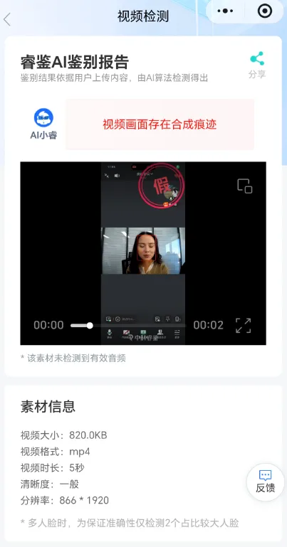 中科睿鉴始终以“用技术让世界更可信”为使命,深耕数字内容伪造检测领域多年,累计拥有60余项发明专利和软著等核心知识产权,曾荣获国家科技进步二等奖等国家级荣誉,其自主研发的深度伪造检测技术已达行业领先水平,能精准识别各类AI生成的伪造内容。
