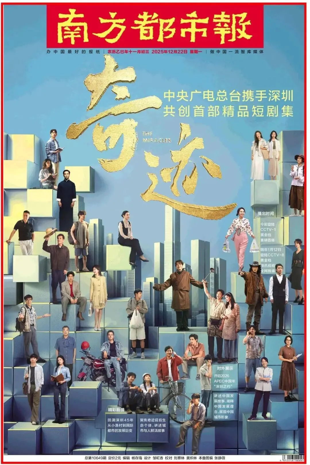 值得关注的是,2025年是深圳经济特区成立45周年,《奇迹》以短小精悍的形式回溯了深圳从渔村到国际化都市的蜕变。而2026年亚太经合组织(APEC)第三十三次领导人非正式会议将在深圳举办,这部取材于深圳发展历程、讲述中国式现代化与国人逐梦故事的作品,也将为2026 APEC中国年“深圳之约”拉开文艺序幕。