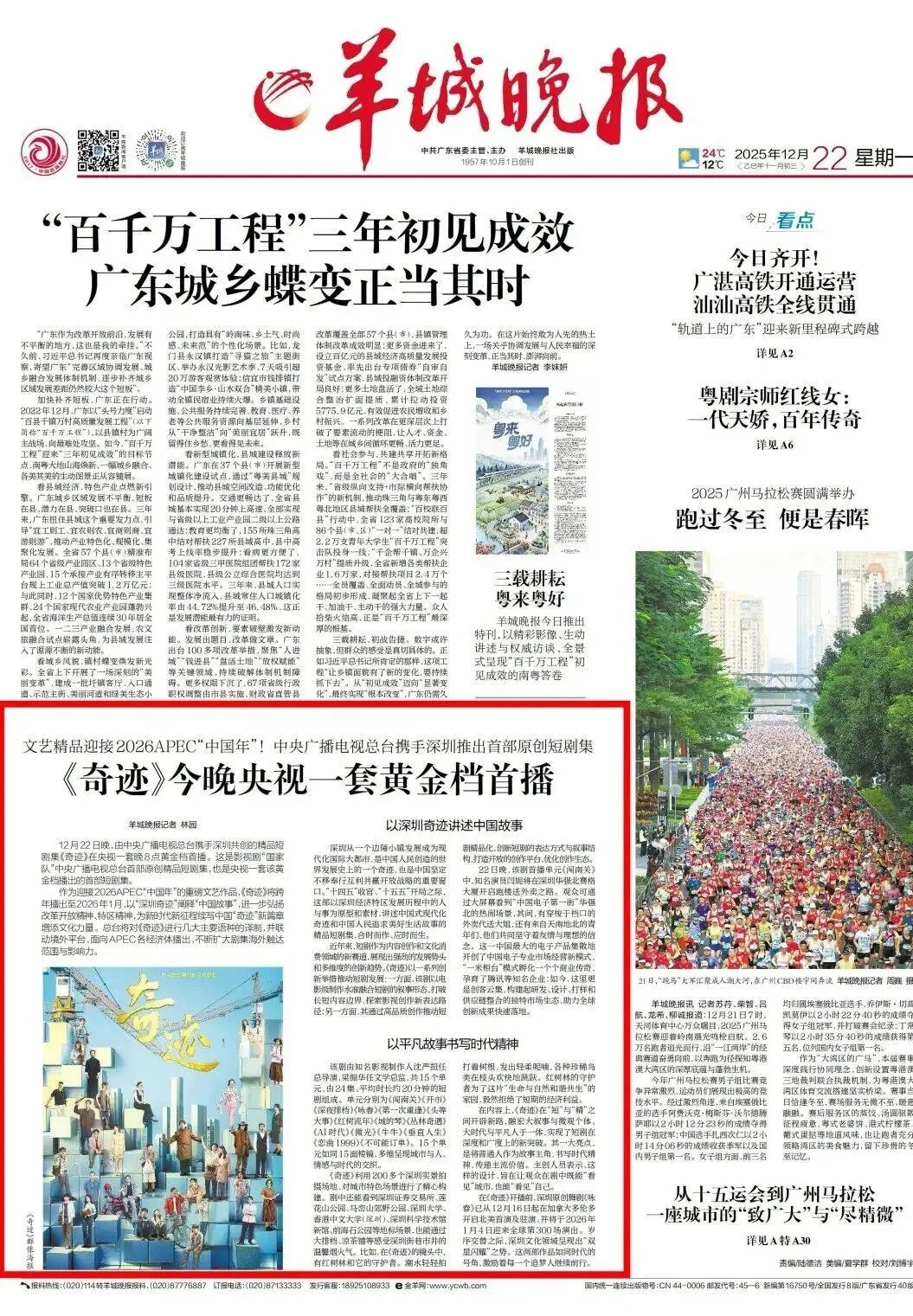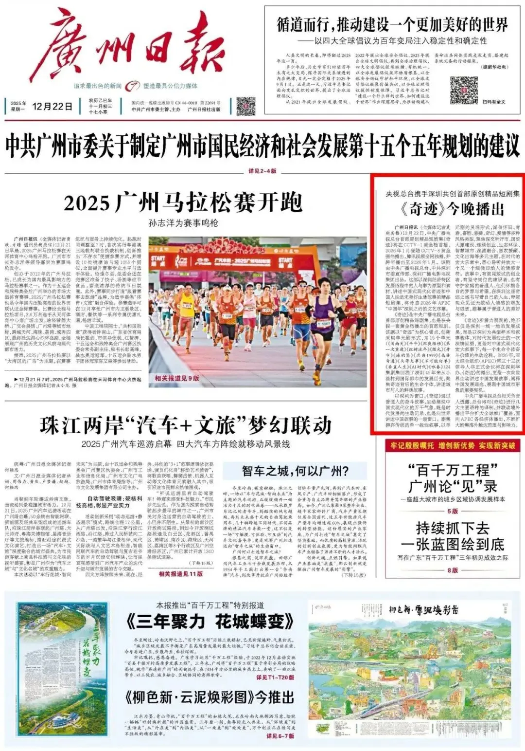除了12月22日起CCTV-1晚8点的首播,《奇迹》还将于2026年1月12日登陆CCTV-8晚7点黄金档。主流媒体点评指出,这部精品短剧应时而生,跨年热播恰逢“十四五”收官、“十五五”开局之际,为新时代新征程续写中国“奇迹”注入文化力量。
