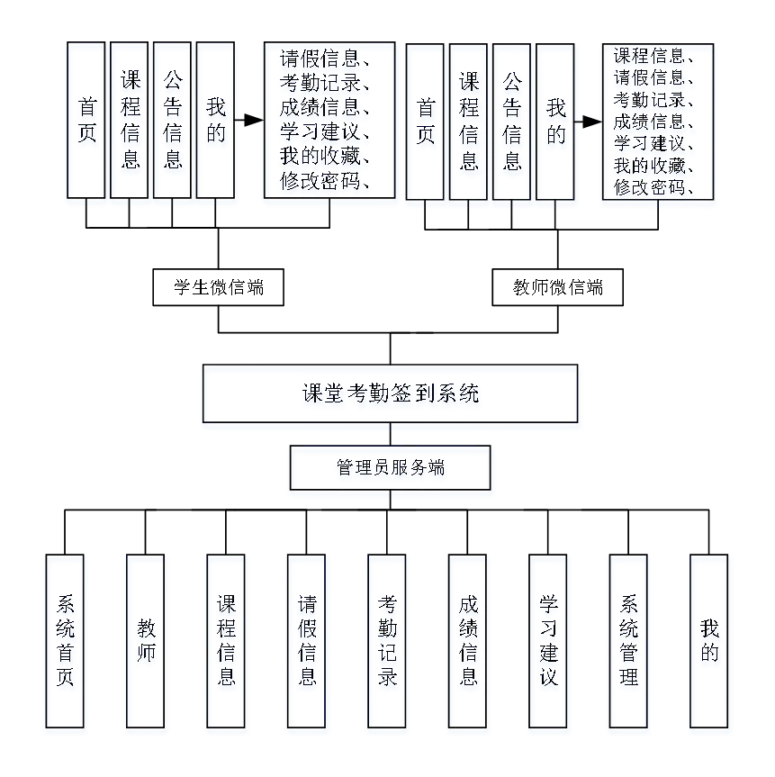 公告信息分类、公告信息、课程信息、考勤记录、学习建议、成绩信息、收藏、请假信息