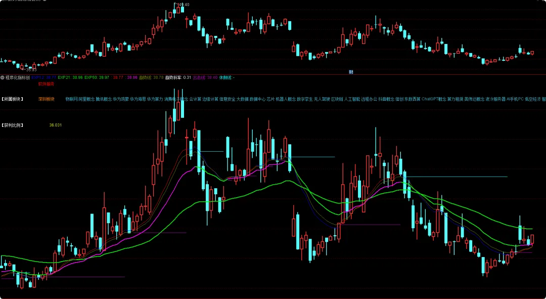 趋势线: EMA(C,14), COLORBROWN, LINETHICK1;