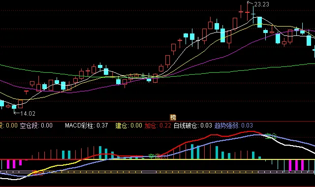 这个指标在副图上通过不同颜色的柱状线和文字提示,直观地展示多空力量对比:当DIF>DEA时,显示持仓段,暗示可继续持有当DIF<DEA时,显示空仓段,提示风险较大“建仓”信号出现时,表明短期趋势可能转好