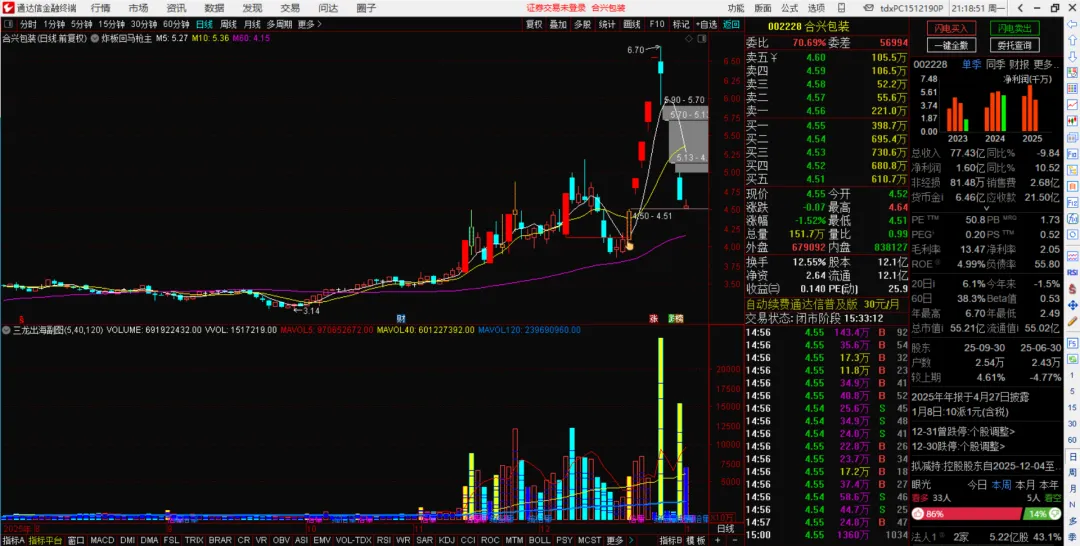通达信金币指标【炸板回马枪】主图/选股源码 精选下胜率还不错 使用方法:在标的炸板后,回调至涨停板的最低价附近,出现“手指”图标后买进即可,后续可择机卖出,务必设置好止盈和止损标准。 精选技巧: 1.选择尽量低位或前期非连板的标的,避免主力已经出货完成; 2.前期涨停板和“手指”图标出现的间隔时间不要过长,10天以内为佳。 获取方式: 第一步:点亮文章右下角的在看“❤”和点赞“👍”; 第二步:点击下方名片关注本公众号; 第三步:回复关键词 炸板回马枪即可(未回复的话耐心等待 取关发送不了消息)。