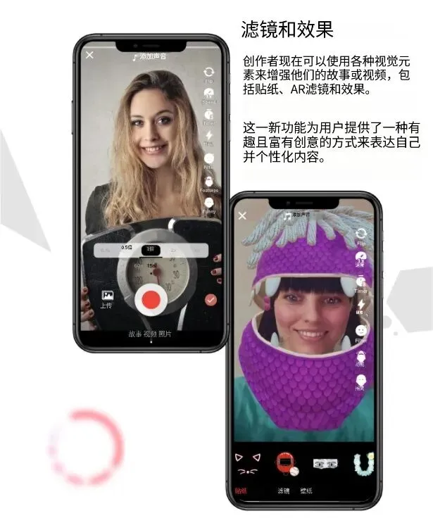 多功能拍摄剪辑:支持速度调整、美颜滤镜、实时贴纸、文字绘图,让创作轻而易举。