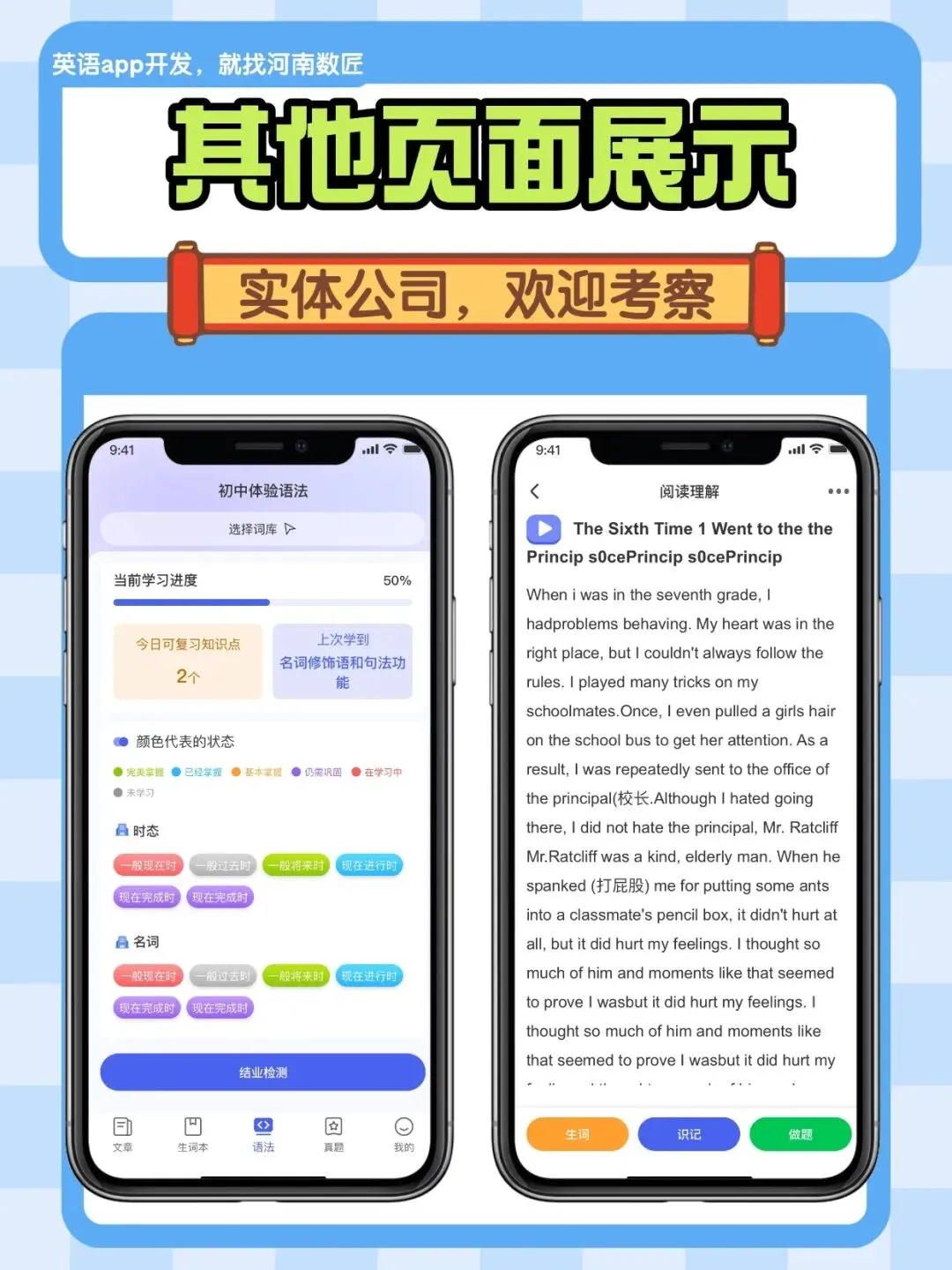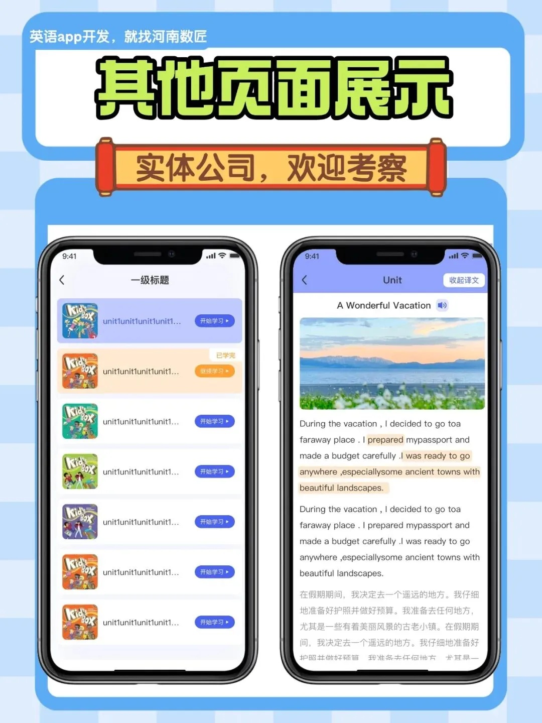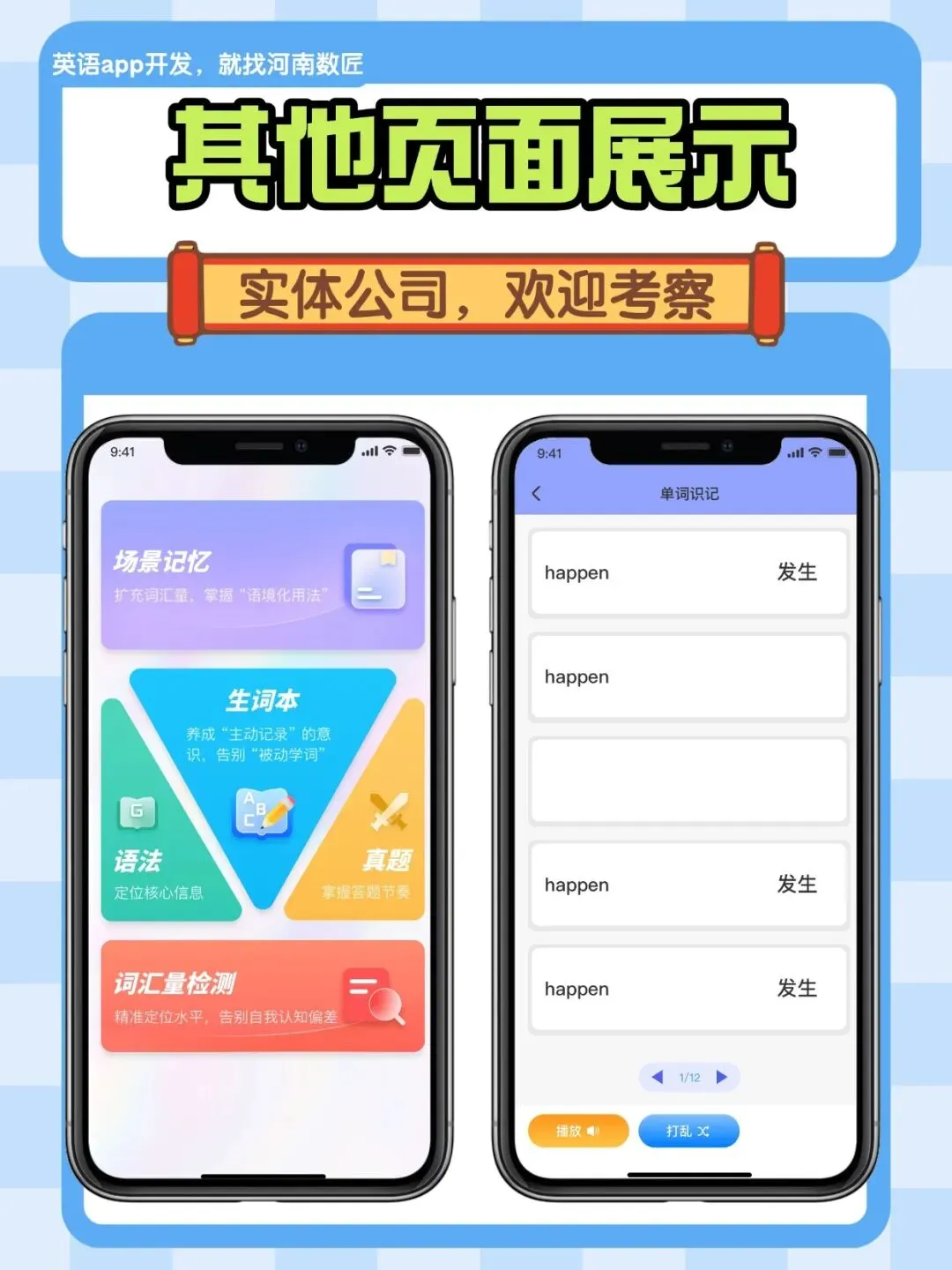 学习类:AI 背单词 app 开发、单词速记 app 开发、背单词软件开发,结合自然拼读记单词 app 功能,让记单词更高效;英语绘本阅读 app 开发、英语启蒙阅读系统、绘本点读 app 开发,打造沉浸式阅读体验。