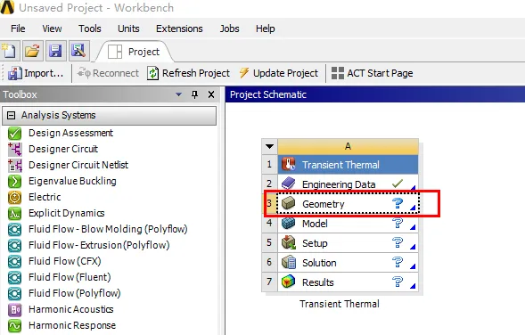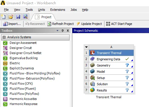 打开Ansys软件,进入主界面,双击【Transient Thermal】。