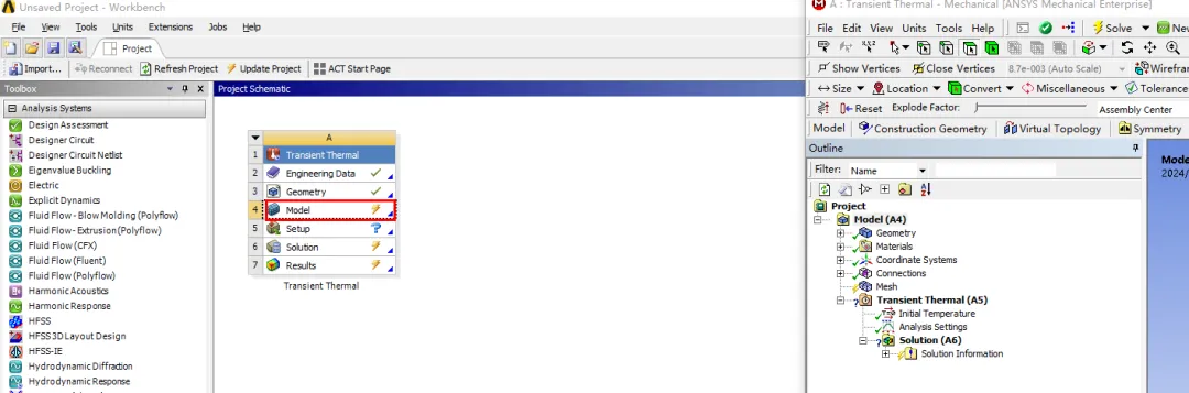4.1双击【Model】,进入【ANSYS Mechanical Enterprise】