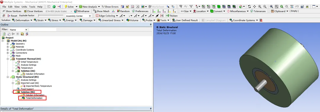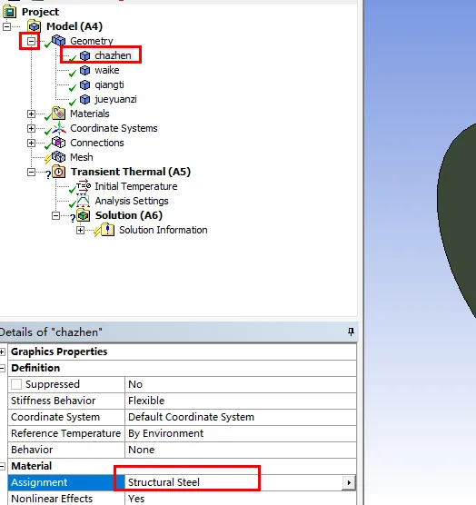 选中【Static Structural】,单击鼠标右键,选择【Import road】,选择【Transient Thermal】,便关联上了。
