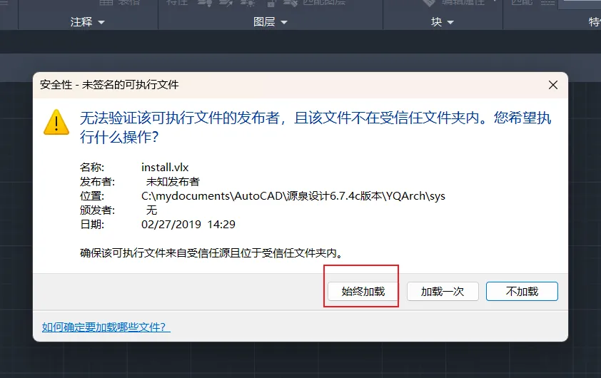 1、解压后将install.vlx拖入CAD绘图区安装;