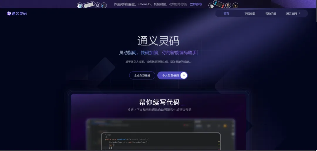 基于通义大模型,提供代码智能生成、研发智能问答能力