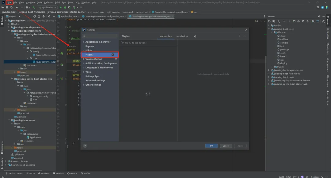 打开插件设置,【点击】File=>Settings=>plugins