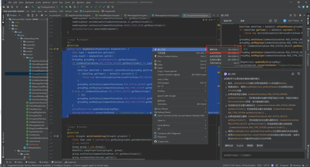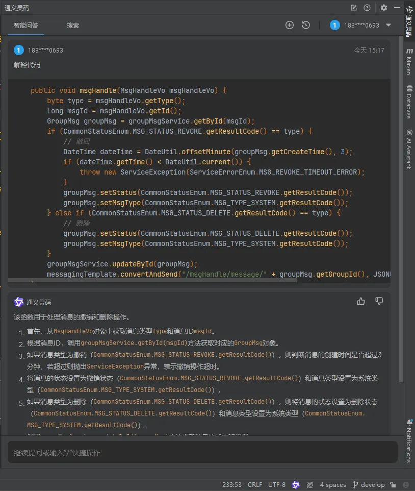 将代码全选,然后【右键】,打开『通义灵码』,选择【代码解释】