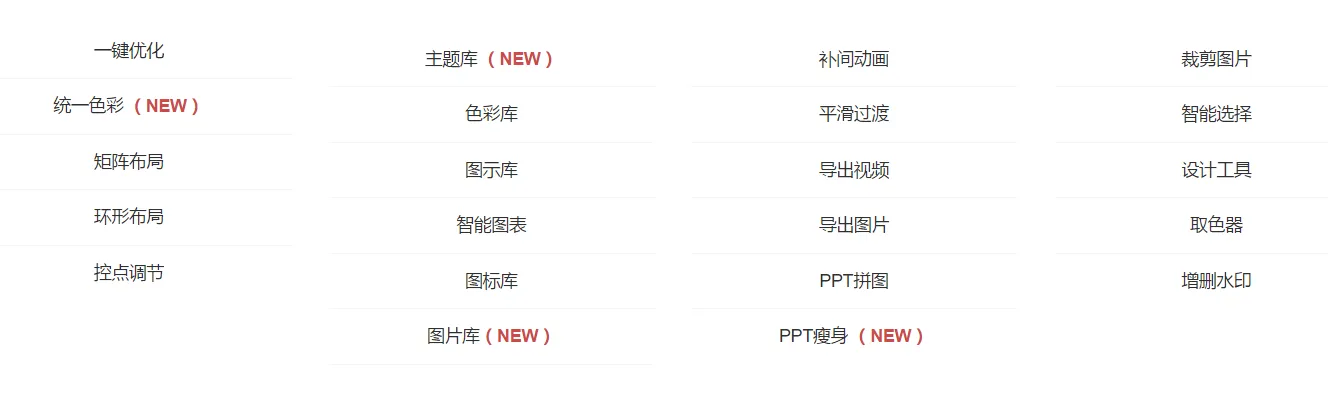 作为 Nordri tools(俗称NT插件)的升级版,iSlide 完美继承了 NT插件的优良功能:一键统一字体,环形/矩形复制,配色库,补间动画,平滑过渡等等好用的功能。