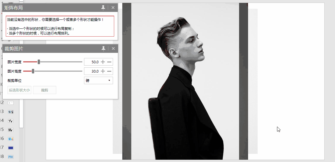 OK 插件主打的也是最为人知的功能是它的图片混合以及一键特效,可以让我们在 PPT 中就实现 PS 里的正片叠底、图片色相、马赛克化、三维折图、形状裁图等图片处理功能。