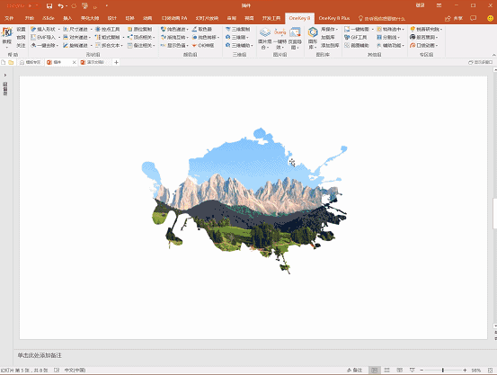 这是一款安装了之后可以让 PPT 媲美 Photoshop 的一款插件,它的全称是 OneKey Tools,直白地翻译就是一键工具,所以这款插件中包含了很多一键出效果的功能:
