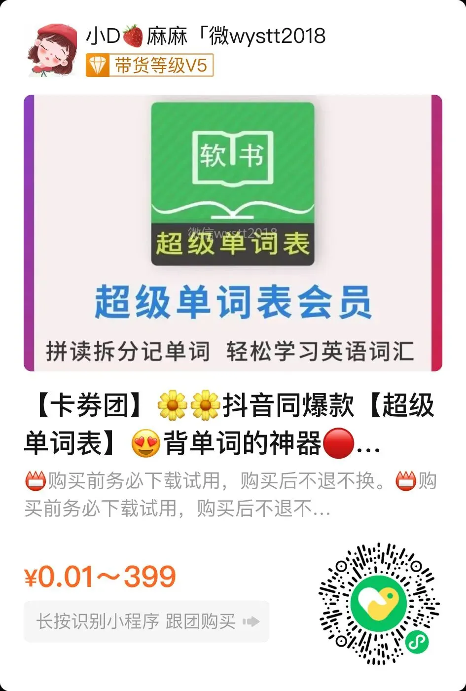 关键是这次给拿到的直播价真的太划算了!在他家APP里,年卡398元,而咱们直接打骨折,只要399元拿下6年大学毕业、考研、出国留学,这性价比真的没得说!