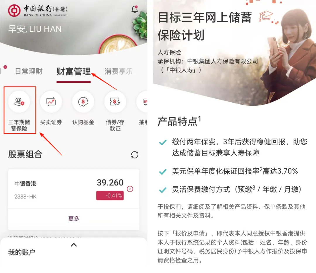 中Y香港APP直购,3年保证年化3.7%,5年5.01%
