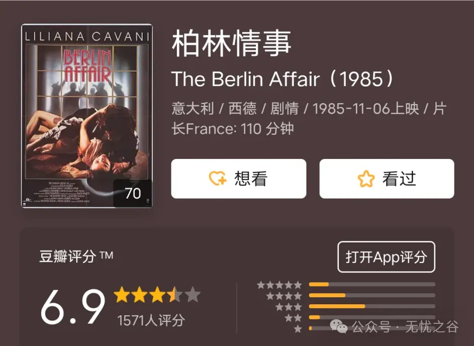 21《柏林情事》意大利女导演莉莉安娜卡瓦尼的情色经典,改编自日本文学家谷崎润一郎的名作《卍》。1938年,德国处于二战前风云变幻的动荡中。年轻的纳粹外交官之妻路易斯绘画班邂逅了日本驻德国大使之女松枝美津子。两人日渐生情,坠入情网。