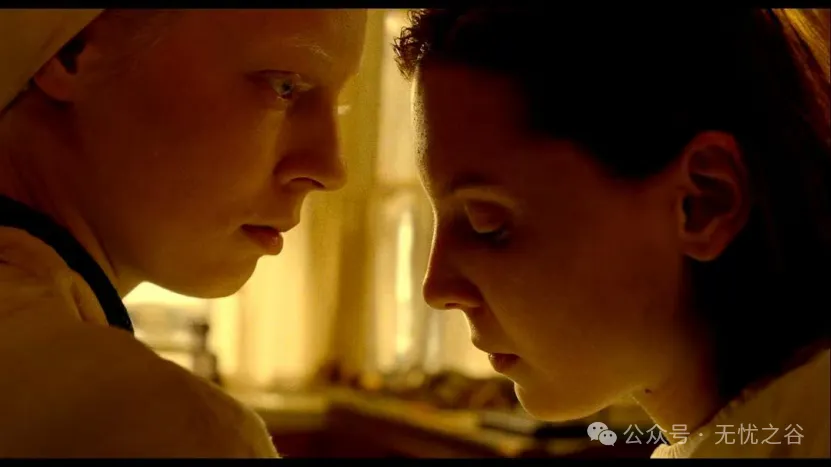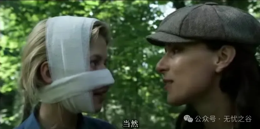 26《绷带奇缘》德国的悬疑爱情片,小女孩Lucille母亲早逝,医生父亲管教甚严厉,父亲将她禁足在家中学习理科知识,叛逆的Lucille自杀未果,脸部烧伤,请来了女护士照料小女孩,工作后无事的护士看到了小女孩书架上的那本《恶之花》,为推动故事发展铺垫,Lucille抽搐,护士控制不住轻轻一吻安慰了病痛中的女孩,两人关系转变,护士工作内容之一为Lucille擦洗身体,此时的动作轻柔、眼神含情明明是在撒糖。影片名场面是小女孩猜绷带后两人亲近场面,热烈、惊恐、释放到忘乎所以。